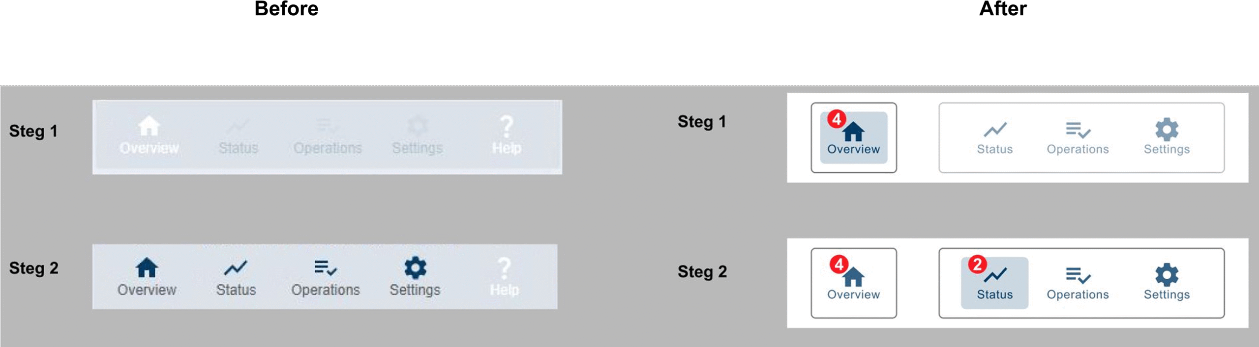 (status, operations and settings) even though they are not functional, as indicated by their low opacity.