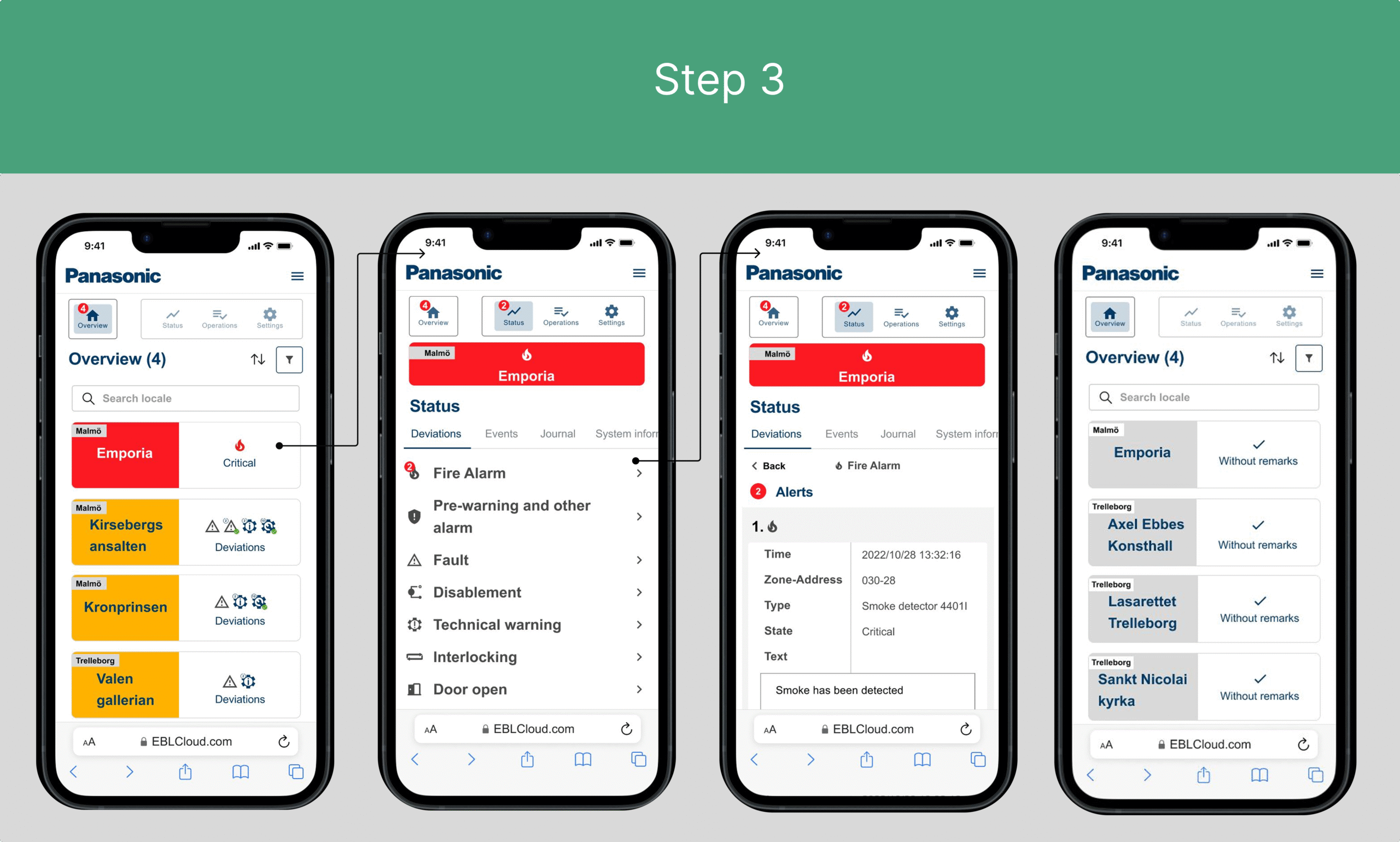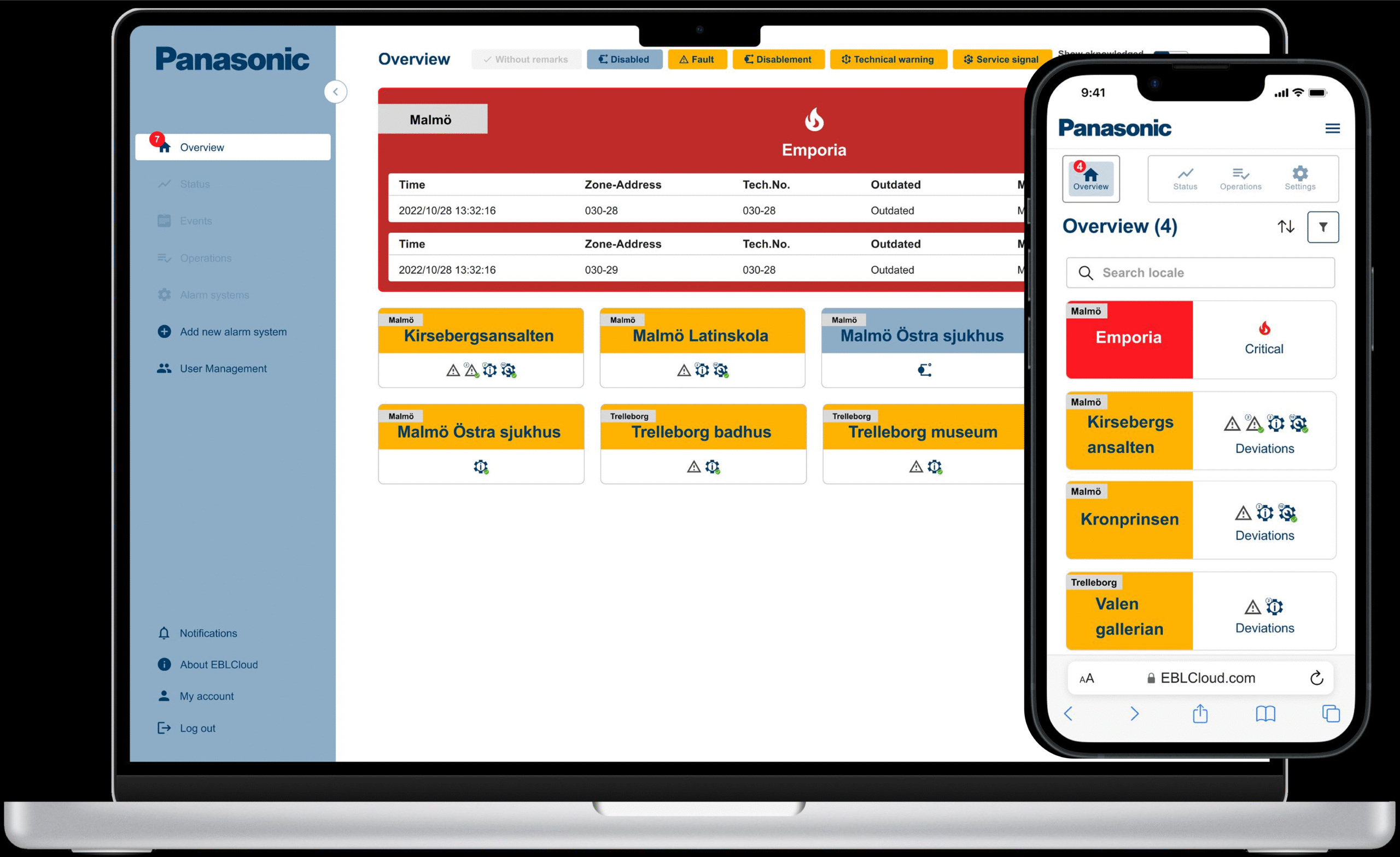 Panasonic Fire & Security has a cloud based system for detecting deviations through their on-site fire alarms. A B2B strategy with both hardware and software.